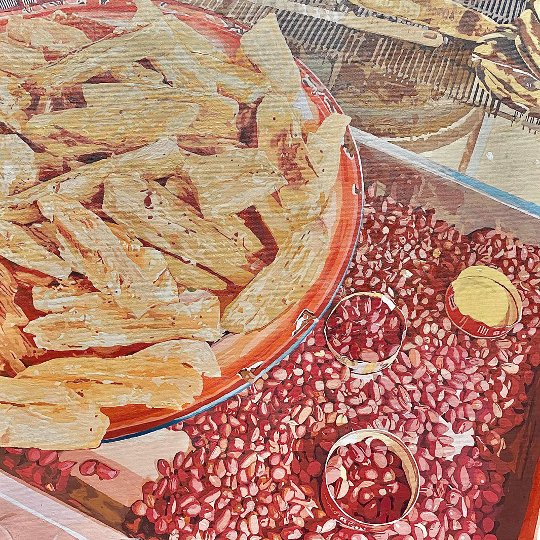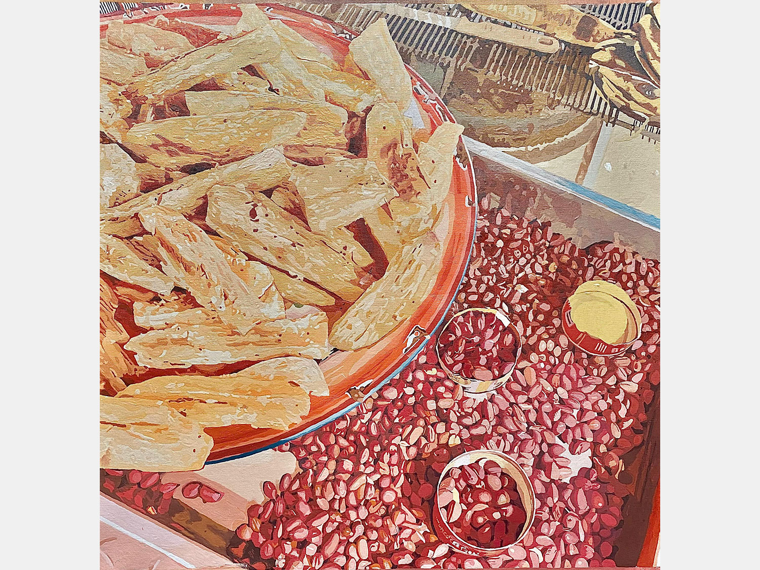 Abdoulaye Konaté studied painting at the Institut National des Arts in Bamako, and later at the Instituto Superior de Arte in Havana, Cuba, where he lived for seven years before returning to Mali.